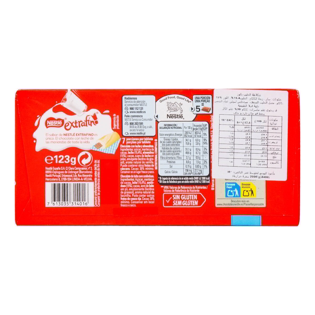 Nestle Extrafino Milk Chocolate with Almonds 123 g