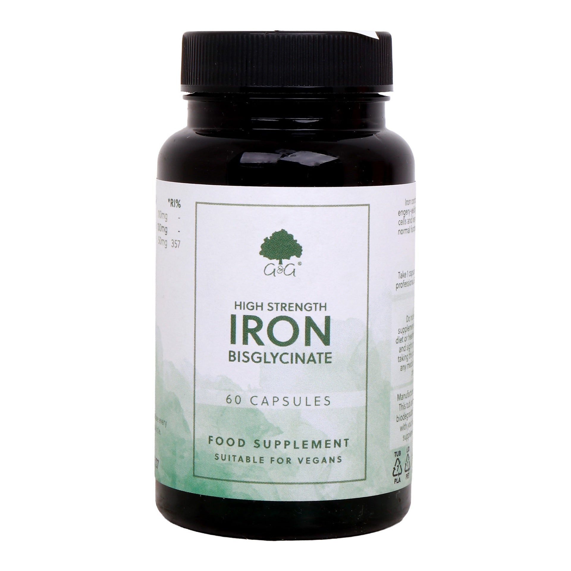 G &G High Strength Iron Bisglycinate Vegan Food Supplement 60 Capsules